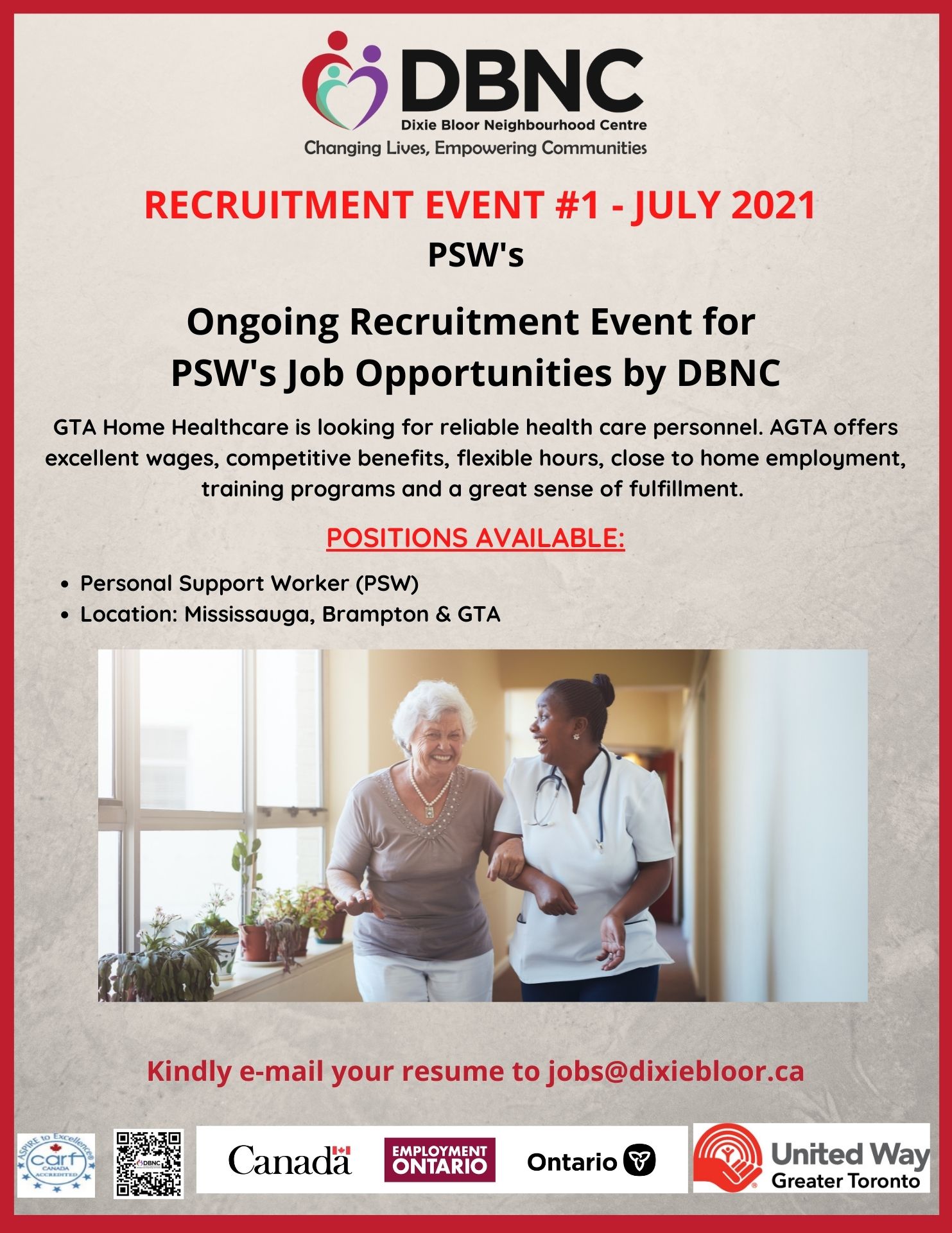 Dixie Bloor Neighbourhood Centre Dbnc On Twitter We Have An Ongoing Recruitment Event For Job Opportunities From Agta For Personal Support Workers Psws Please Send Us Your Resume At Jobs Dixiebloor Ca If You Re